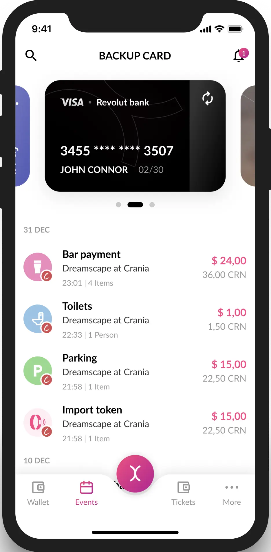 Get the most out of your event with the CHI App (native & web) by connecting your card, viewing real-time transactions, token balances, track VIP table charges, accessing event information, storing , transferring or selling tickets, all in one app. The app supports the ability to connect a wearable, for quick and easy contactless payments at the event without being dependant on your phone or it's battery life.
